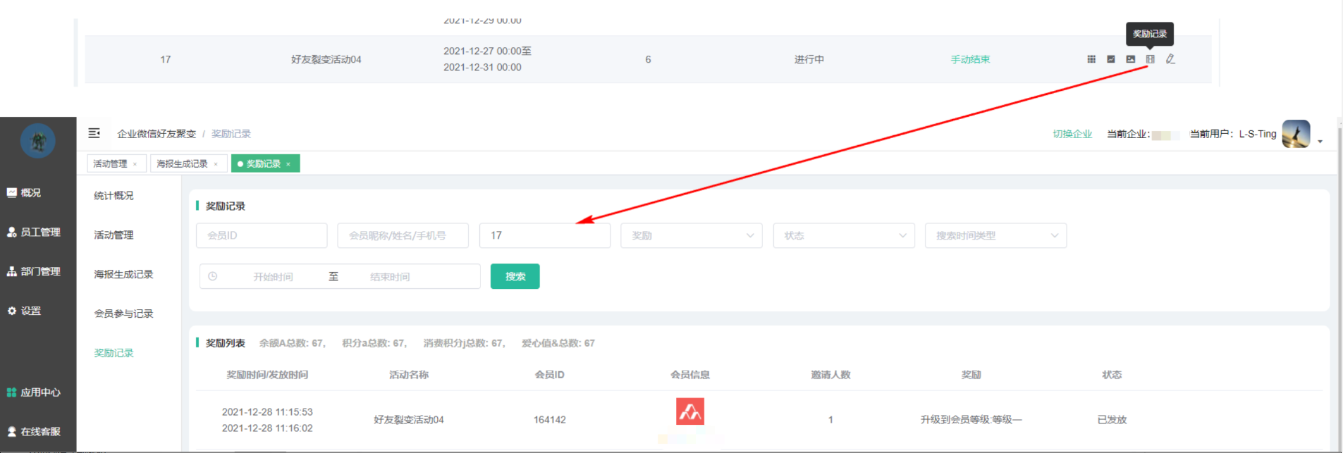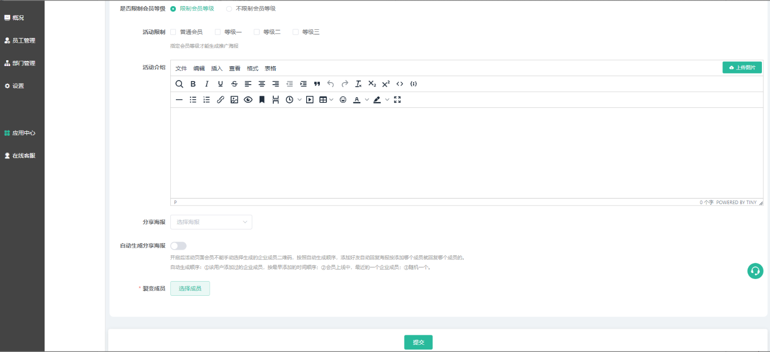 2、 好友裂变:以企业微信成员为载体,进行引流裂变;通过设置奖励积分、爱心值、余额、优惠券(兑换奖品)、会员等级(升级观看免费课程/享受折扣等)等吸引用户,让客户扫码添加企业微信成员为好友、获取专属海报,再邀请若干好友添加企业微信成员,完成邀请后即可获得奖励。