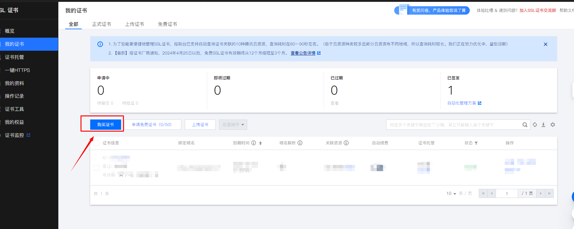 搜索SSL证书,点击购买证书